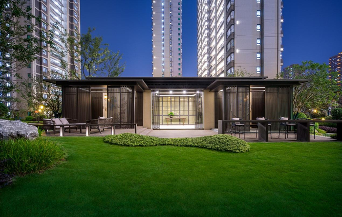 这次交付最引人注目的就是二期会客厅,全龄向设计为业主提供了休闲交流与小聚放松的户外社交空间,阳光草坪则成为社区天然的人气聚集区,通过对公共空间的营造,将社区不同类型的人群聚集起来,打破界限感,拉近邻里关系。