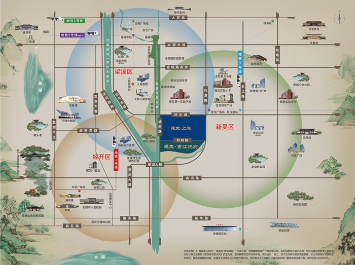 北面是无锡主城,地铁5号线正在开工建设中,通车后,则可以轻松到达水乡意蕴十足的南长街,再向北,则是无锡繁华云集的主城,恒隆、T12、苏宁广场、崇安寺步行街……购物美食一应俱全。