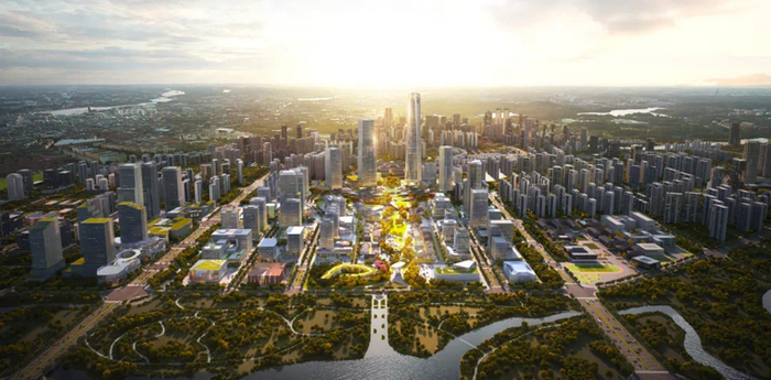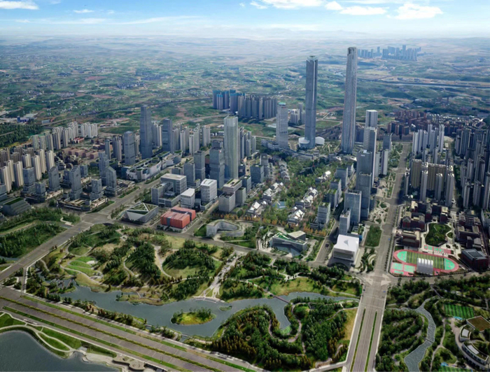 (天府总部商务区396米地标效果图)