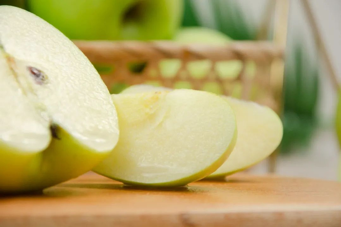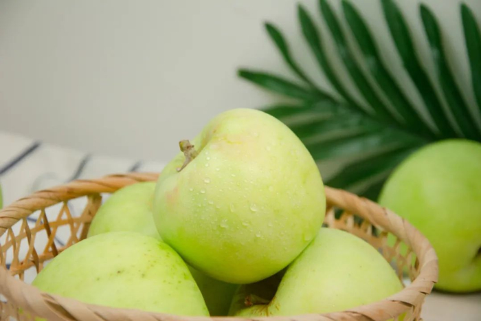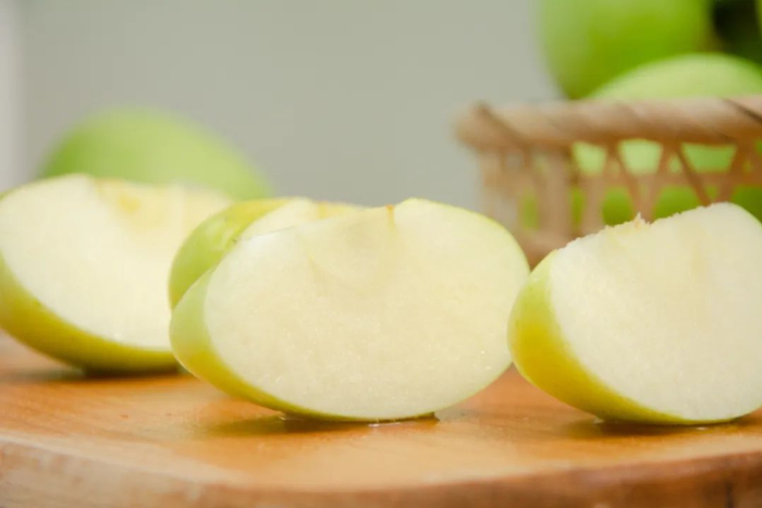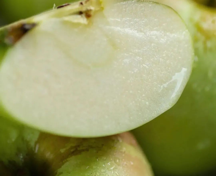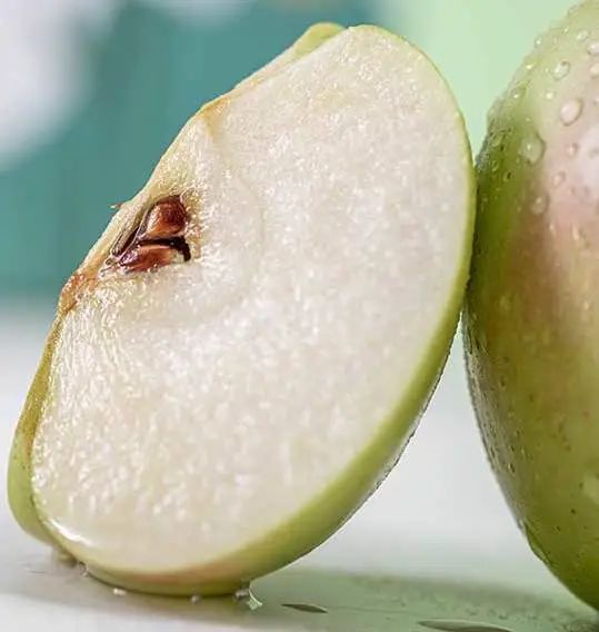 去掉翠绿的外皮,露出乳白的果肉,质地细腻,舌头一压轻松化汁,一口刷新你对青苹果酸涩认知。