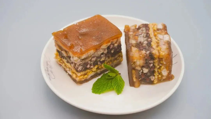 晶莹剔透的外皮,内里却诚意满满。满满的芋头、红豆、绿豆一层叠一层,在垒高糕体的同时,也成就了它的多层次口感,每一层的口感和味道都略有不同,使得整个糕点更加丰富多样。芋头糕的外层弹牙爽口,而内层则更加绵密柔软,香味浓郁,让人回味无穷。