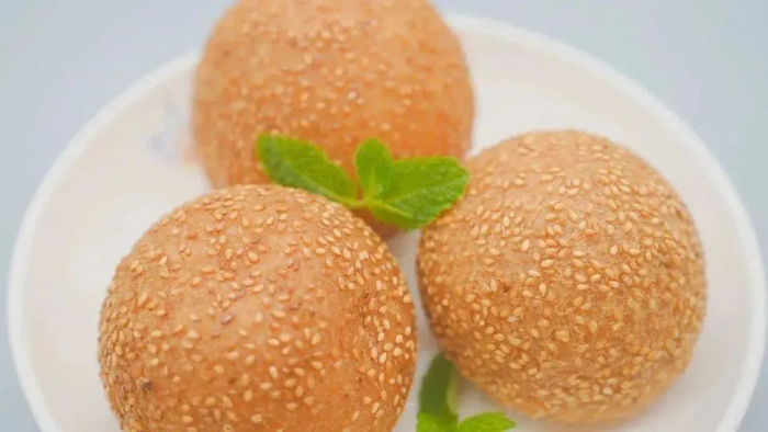 煎堆,又被称为麻团、珍袋,因其独特的制作与美味的口感,格外受到小朋友的喜爱。煎堆色泽金黄,整体膨大滚圆,表皮薄脆带着芝麻的油香,一口咬下,外壳酥脆,内里的绿豆内馅却柔软香甜。