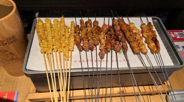 “小牛肉”和“牛肥瘦”是店内的招牌烤串,烤制的火候刚刚好,牛肉口感鲜嫩,孜然很香。肥肉部分在炭火烤制后,散发出特殊的脂肪香气,入口即化但不油腻,起到了画龙点睛的作用,配上店内特制的蘸料后别有一番风味。