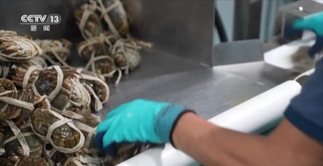 江苏宜兴市生锋生态河蟹养殖专业合作社 储生锋:这个运输要求跟国内还是不一样的,因为我们主打到国外去的时效性要有保证,从捕捞开始一直到国外客户手上整个是冷链运输,保证螃蟹的鲜活度和成活率。像泰国等近一点的国家,如果航班合适的话,我们现在打包发货,晚上半夜清关的话,早上就在泰国消费者的餐桌上面了。