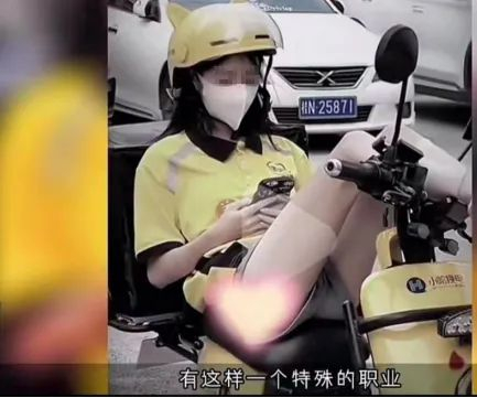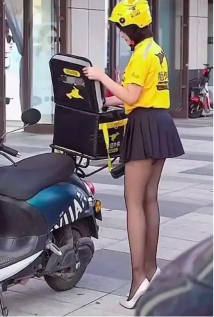 一批容貌尚好、身材窈窕的女孩,穿着标志性的黄色或蓝色外卖员制服,却套着超短裙、黑丝、高跟鞋“送外卖”。