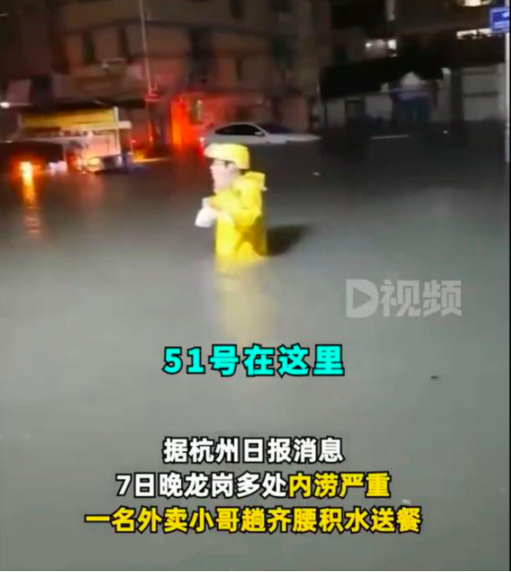 所以我们看到,今年9月份,深圳普降大雨时,一名外卖小哥在齐腰深的积水中,艰难送餐。