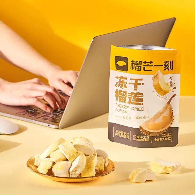 将鲜榴莲肉做成了冻干小零食,随时随地想吃就吃。