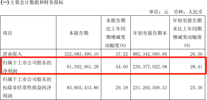 恒立液压2023年三季报部分财务数据