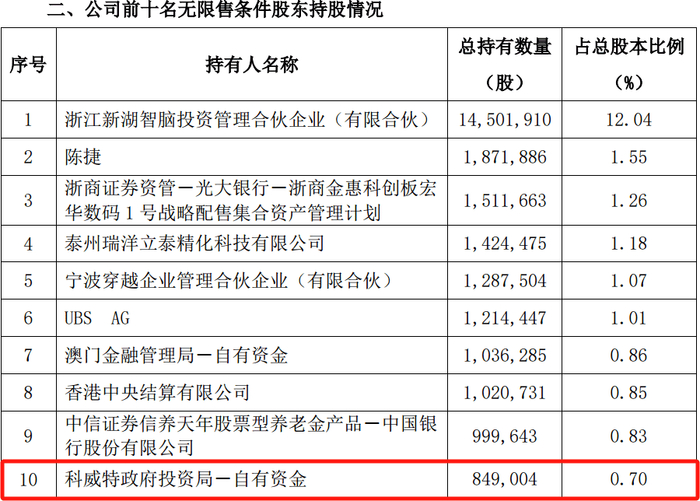 以科创板公司宏华数科为例,10月18日登记在册的前十名无限售条件股东持股情况显示,科威特政府投资局新进成为公司第十大流通股股东,持股数量84.9万股,截至11月3日收盘持股市值0.85亿元。
