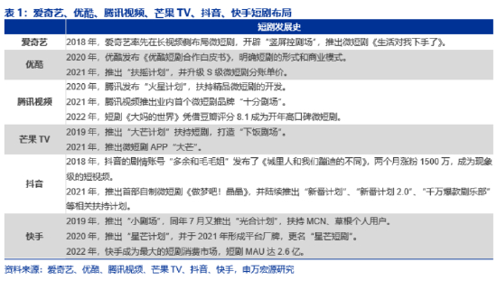 短剧不是新概念,长短视频平台布局短剧已久,小程序短剧正兴起。短剧是网络视频平台成形初期重要的内容形式,如13年5分钟短剧《万万没想到》,15年15分钟短剧《属丝男士》。长视频平台爱优腾芒,短视频平台抖快自18年起陆续开始布局短剧,目前都已推出自己的短剧剧场品牌。此外,小程序短剧正在兴起,相比于传统短剧单集时长更短,集数更多,更贴合下沉场景。