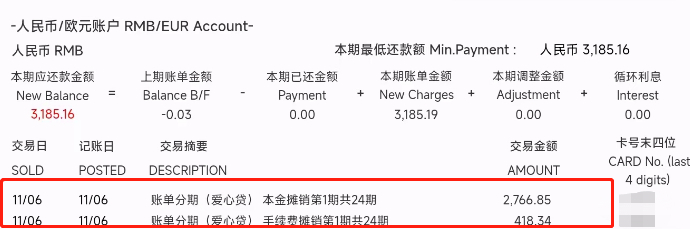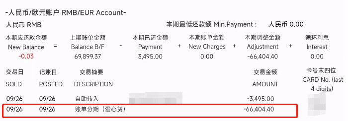 谢先生对66404.4元的账单办理了爱心贷24期分期还款