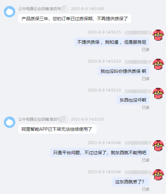 杨女士不满与客服交涉过程中对方对于产品质量问题“前言不搭后语”