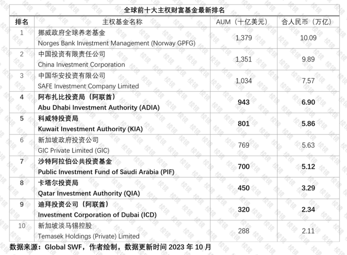 目前,阿布扎比投资局管理规模达9430亿美元,约合6.9万亿人民币,是全球第四大代表政府投资的主权财富基金(Sovereign Wealth Fund,SWF)。