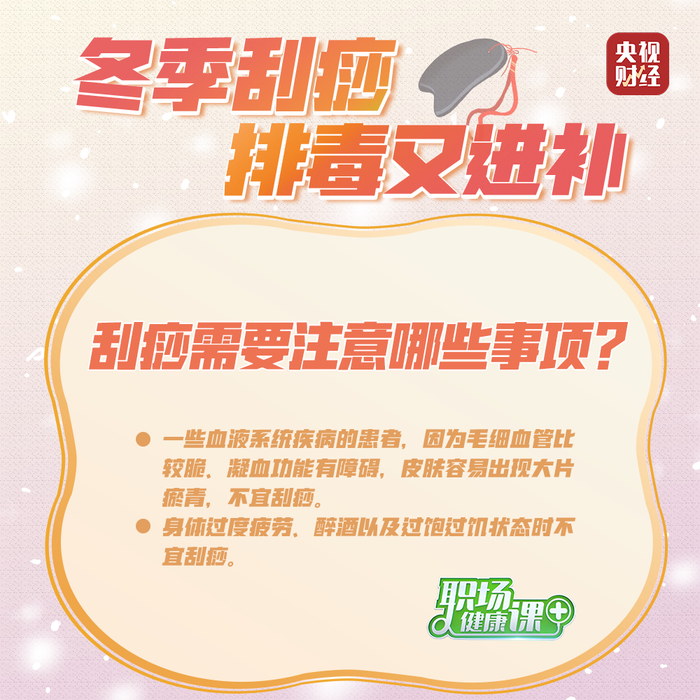 刮痧可以疏通经络,活血化瘀,促进体内邪气排出,起到增强脏腑功能的作用。冬季用适当的方法刮痧,有助于祛寒养生。