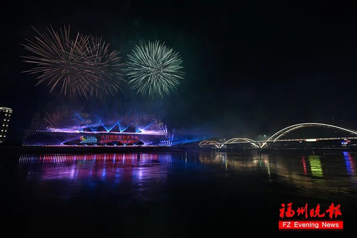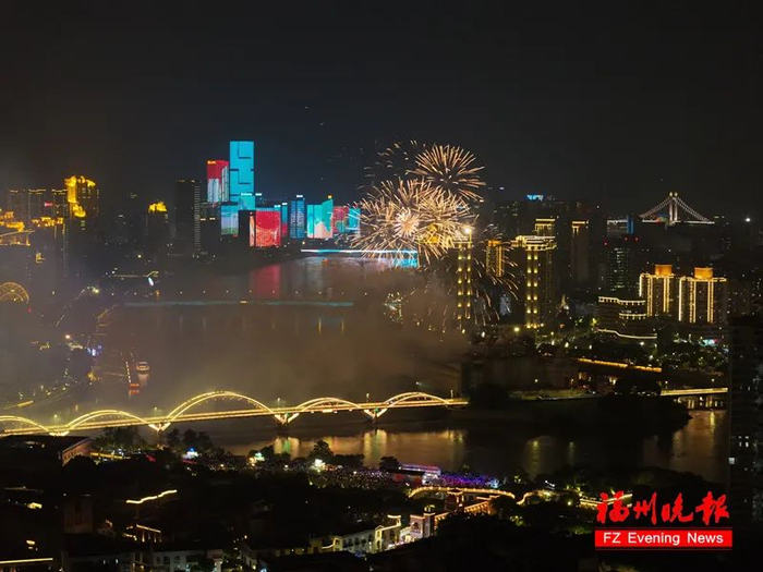 为庆祝福州荣获联合国大奖——全球可持续发展城市奖,11月5日20时20分,一场以“福州闪闪亮”为主题的光影烟火秀,在闽江之心震撼上演。