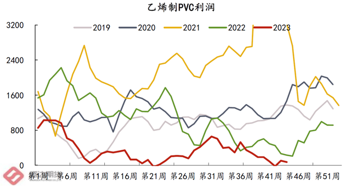 2015年之前采用电石法,之后采用乙烯法制PVC。主要销区:江苏、浙江、山东。自9月底以来,企业快速促销,大量预售,到10月22日,PVC整体库存达到年底最低点,近期库存有所累积。PVC库存最低在2000吨左右,最高可达到3000吨。目前,乙烯法成本为5400元/吨,单利润可以达到600元/吨。