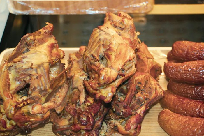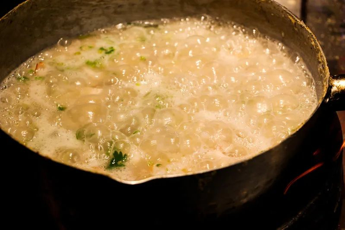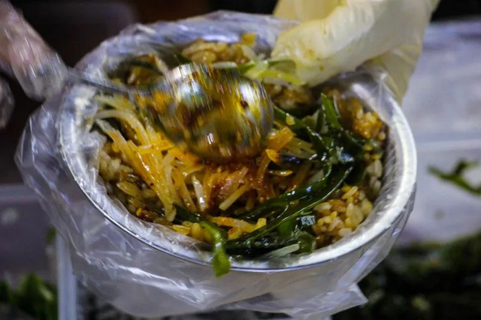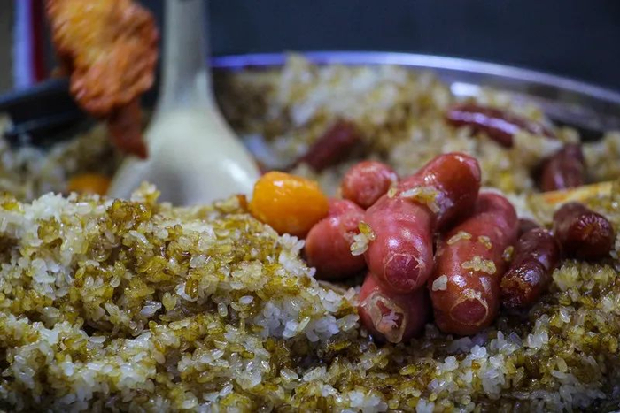 盛满了镶嵌着许多咸蛋黄、香肠、
