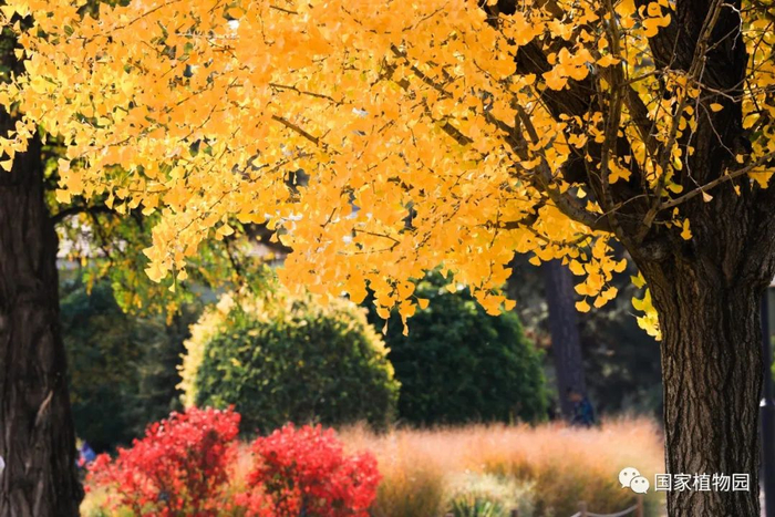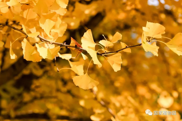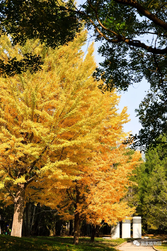 此时,正是赏银杏的好时节,国家植物园(北园)曹雪芹纪念馆、湖区、树木园、卧佛寺、展览温室等多个景区;国家植物园(南园)银杏大道、牡丹园、本草园内为主要栽植区域。除此之外园区内各处零星栽植,映在眼中的是细碎的点点金黄。
