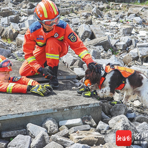 它们总是出现在最危险的时刻,它们用鼻子贴近那些缝隙,捕捉最细小的生命气息,它们面向灾难不退缩,它们是“不会说话的天使”……在灾难救援现场,除了救援人员,也经常出现搜救犬的身影。