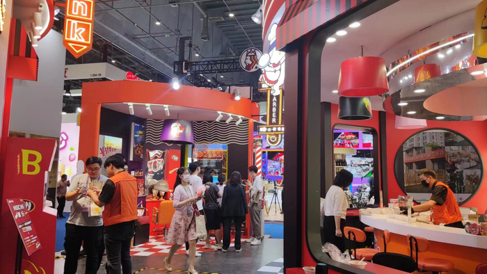 在展位面积扩增的同时,参展商们对展台的布置也十分用心。本次进博会,三养方圆集团的展位以“三养新食界”为主题,其展台色调延续三养方圆集团的企业标识色——明亮的橙色色调,展位面积相较去年增加约一倍。“三养新食界”展馆打造出韩国夜市街头场景,在重视企业与产品展示的同时,让观展者体验到三养方圆集团的产品的美味与互动性。进入“三养新食界”的来宾将会从“新食街银行”开启三养火鸡面世界的体验,并通过“新食街超市”“新食街餐厅”身临其境地体验三养方圆集团的产品,并在“新食街理发厅”体验韩国文化潮流,展位中还有“隐形菜单”提供新的味蕾冲击和“食用”玩法,为观展者带来惊喜。