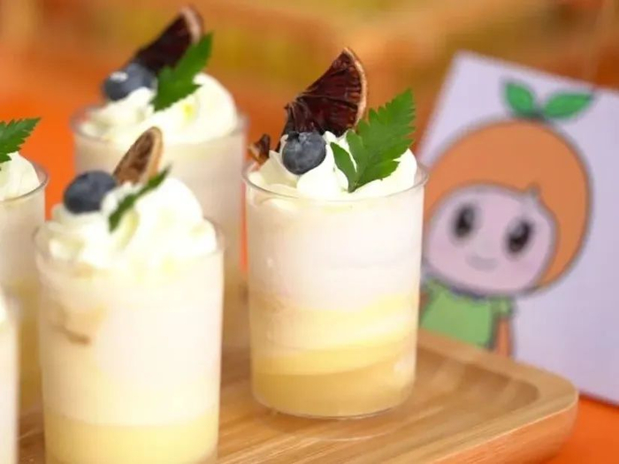 想不到德庆贡柑可以做出这么多美食,有贡柑蛋糕、贡柑果冻、贡柑面包等等,很好吃,还有贡柑茶,味道很好。