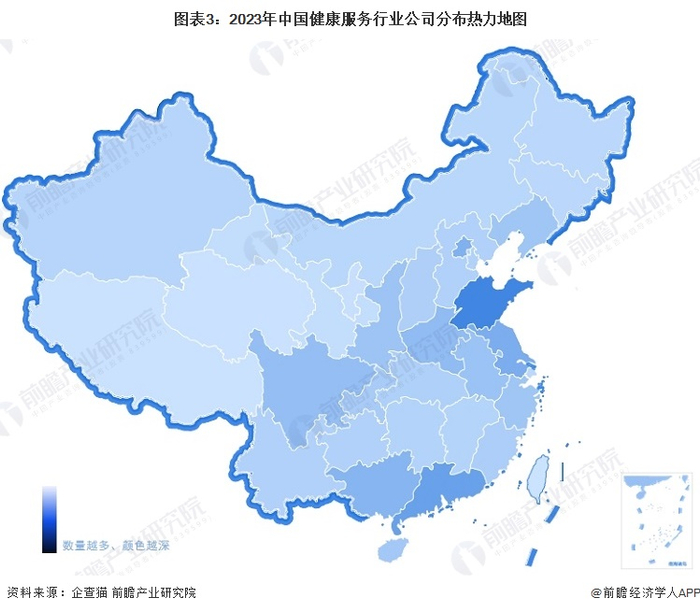 健康服务行业产业链区域热力地图:主要分布在山东和广东