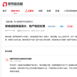 2023年11月02日,成都市双流区住房建设和交通局回复:已责令开发公司切实履行质量保修义务,严格按照技术标准予以维修,开发公司承诺在11月30日前处理完成。