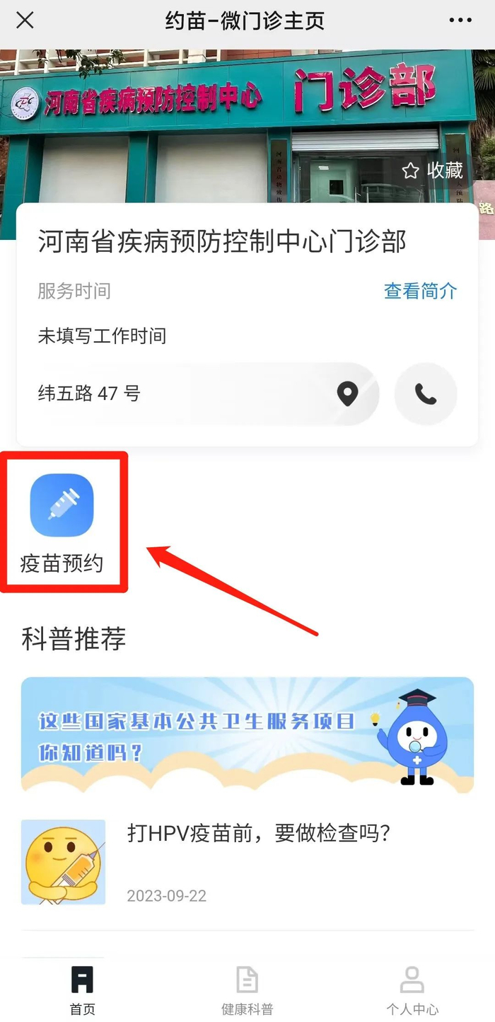 接种地址:河南省疾病预防控制中心门诊部(郑州市金水区纬五路47号)。