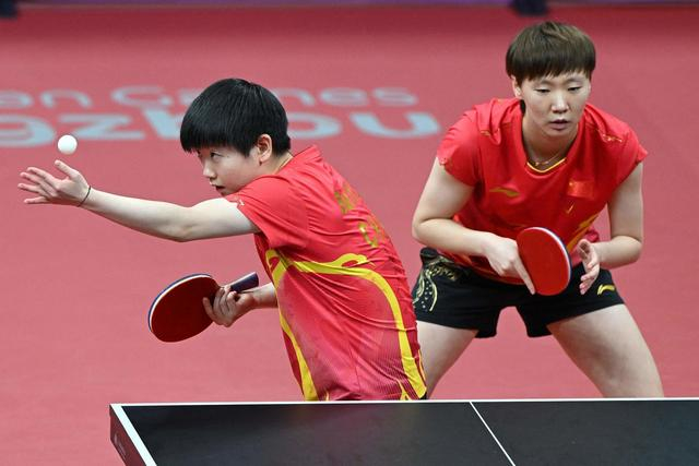 2023年9月30日,杭州亚运会乒乓球女双1/4决赛,孙颖莎/王曼昱1-3不敌张本美和/木原美悠 图据视觉中国