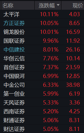 其中,不少有合并预期的券商,更是涨幅可观,且不乏涨停。例如,太平洋(601099)和华创证券全资股东华创云信(600155),分别涨停和上行7.76%。