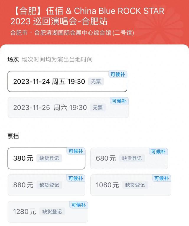 记者注意到,目前平台已有部分演出上线“可候补”的选项。如伍佰2023合肥站巡回演唱会购票页面右上方已经出现蓝色“可候补”的标志。