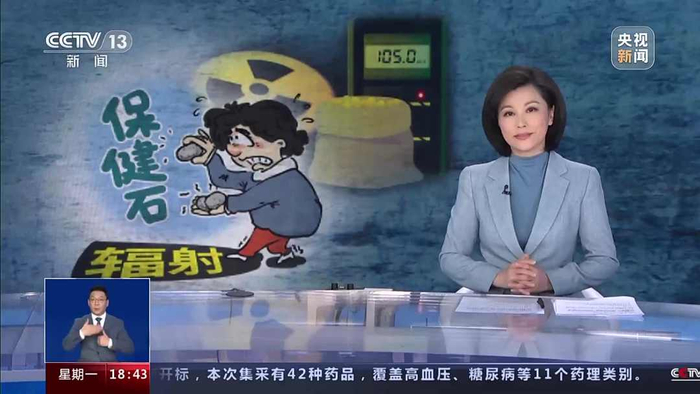 北京师范大学国家安全与应急管理学院教授 余雯:我们正常的环境辐射本底剂量率大概是0.1微西弗/小时,一年365天累计下来差不多是1个毫西弗的辐射剂量。如果这块保健石超出本底水平1000倍的话,一年累计下来接近于1个西弗的辐射剂量了,相当于1000毫西弗,这个量还是非常大的。
