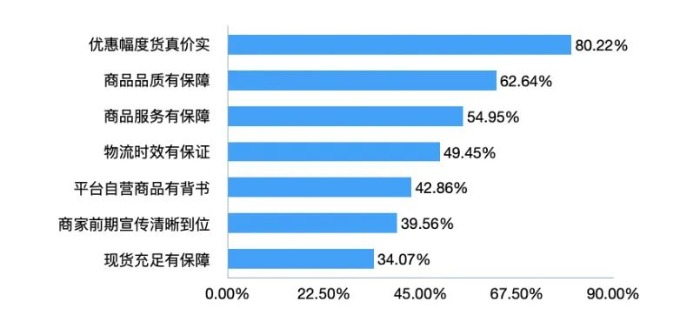 “通常来说,你在‘双十一’这样的时间节点购物,最看重哪些因素?”调查结果