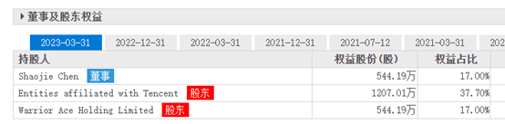 据公司文件,截至2023年3月31日,陈少杰持股17%;张文明已经从董事和高管名单中消失,持股比例不足1%。