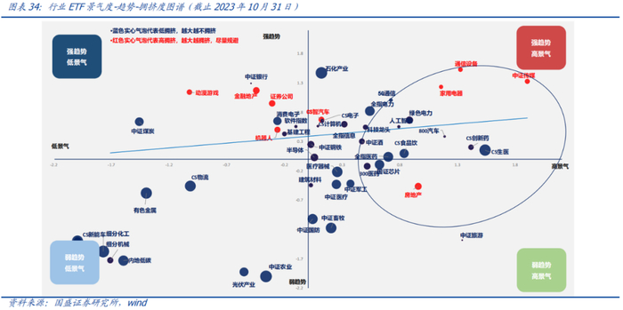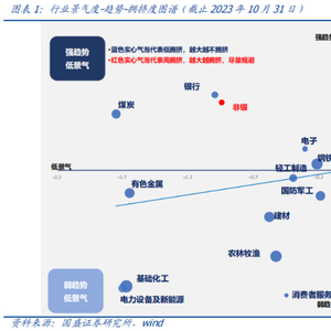 本期话题:困境反转策略本年超额被动股基20%。根据我们的行业配置框架(右侧景气趋势和左侧困境反转),当前的配置建议和前两个月的观点相比变化不大,继续保持“顺周期+医药+TMT”的哑铃型配置,例如钢铁、石油石化、机械、家电、汽车、食品饮料、医药、通信和电子等。此外,今年年初以来困境反转策略表现优异,落地到ETF配置的策略相对被动股基超额20%,10月下旬随着市场反弹超额收益有所回暖,当下市场从底部有反弹迹象,困境反转策略可以重视起来。