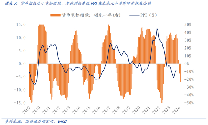 货币宽松指数相对PPI有接近一年左右的领先期,因此模型预计PPI在未来几个月有可能企稳回升,目前PPI已触底企稳,连续三个月环比改善。
