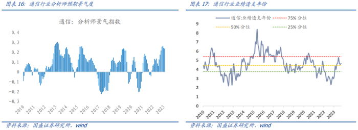 通信:盈利层面,分析师预期景气度处于扩张象限。估值层面,行业业绩透支年份当前约为5.0年,处于历史 68%分位,近期估值有所回升,处于合理偏高区间。