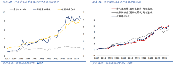 2) 行业趋势模型:强趋势+低拥挤,规避低景气。顺着市场趋势走,思路简单易复制,持有体验感强,比较偏右侧。