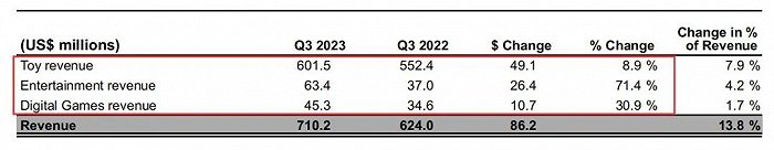 同时,他将Q3的强劲表现归功于对“IP驱动的玩具业务和扩大娱乐产品的战略”的成功执行。