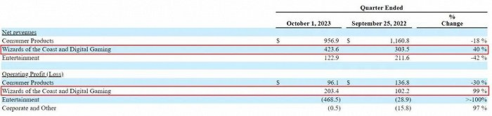 这也是孩之宝Q3业绩报告中少数称得上“可圈可点”的地方。第三季度,该部门收入同比增长40%,运营利润同比增长99%。