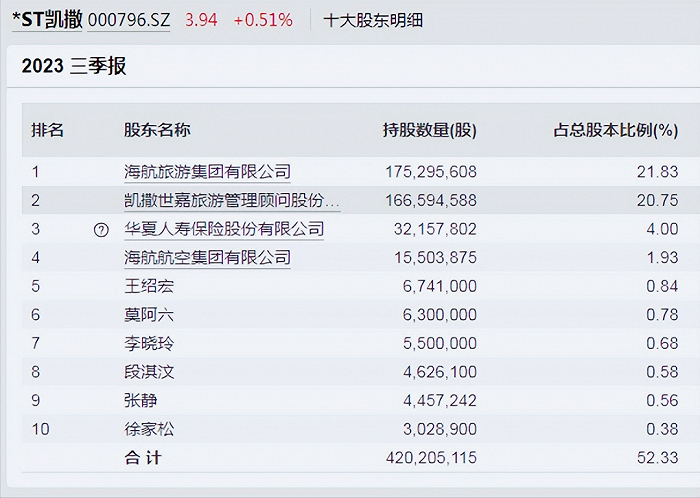 重整前,原控股股东凯撒世嘉方(含一致行动人)合计持有1.89亿股,占23.52%。根据三亚市城郊法院裁定,将凯撒世嘉持有9300万股股票执行抵偿给金谷信托。