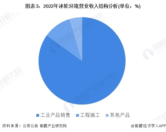 冰轮环境业务主要包括工业产品销售、工程施工、材料销售等,其中工业产品销售是冰轮环境主要收入来源,2022年工业产品销售实现营业收入48.6亿元,占比达85%。