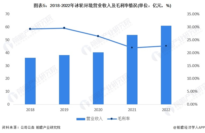2018-2022年冰轮环境营业收入呈逐年上升趋势,2022年达61.02亿元,同比上升13.4%;毛利率方面,公司毛利率整体有所下滑,2022年毛利率为22.69%,较2021年有小幅回升。
