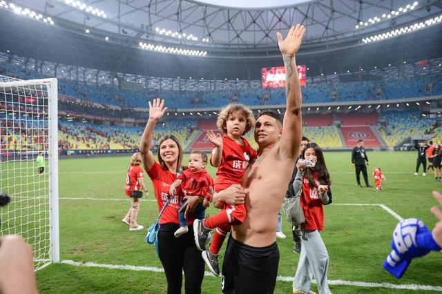 中超最后一轮,艾克森带着全家人一起感谢成都球迷。