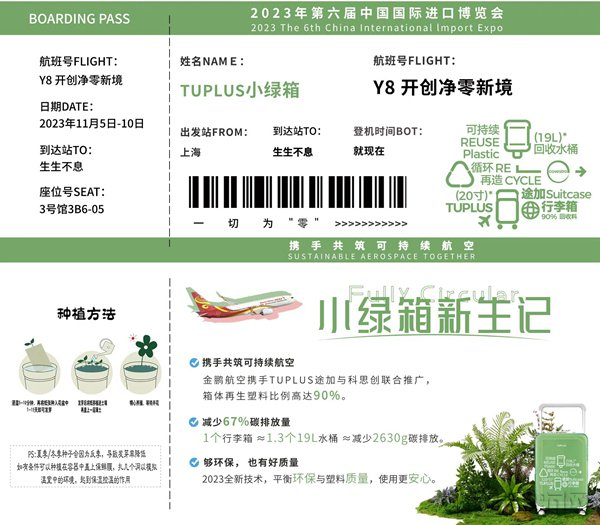 金鹏航空在进博会上以民航元素推介“小绿箱”的主题登机牌,可以变为绿植(金鹏航空供图)