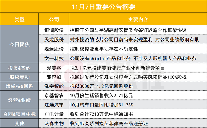 森远股份发布股票异动公告,控制权拟变更事项存在不确定性,转让的标的股份目前处在质押状态,尚未取得质权人同意函;受让方能否过户存在不确定性;本次股权转让尚未取得深交所合规性确认。因此本次权益变动事项能否最终实施完成及实施结果尚存在不确定性。2023年11月7日公司股票换手率为32.13%,换手率较高,鉴于公司股价短期大幅上涨,可能存在非理性炒作行为。