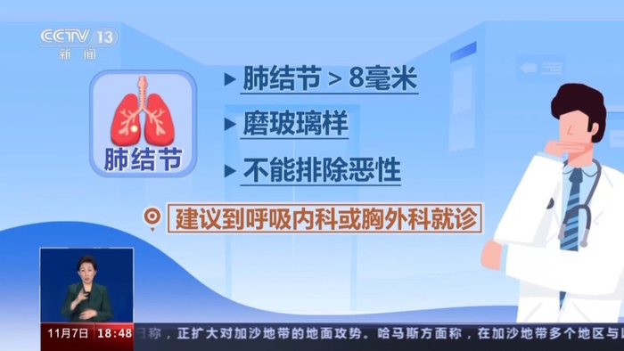 北京大学人民医院健康管理中心副主任医师 李卫:通常来说囊肿是良性的,但有些部位的囊肿如果直径特别大或者突然短期内增大的话,我们要特别重视去医院相关科室检查,比如说像乳腺增生,年轻的女性乳腺增生是很常见的,跟生理期是有关的,所以如果我们在体检中发现了增生也不用紧张,比如说像肺结节,那么8个毫米以下的结节相对来说是安全的。