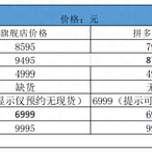 数据来自各品牌在京东自营旗舰店、天猫旗舰店、抖音商城旗舰店、拼多多这四家电商平台的价格(如下图)。