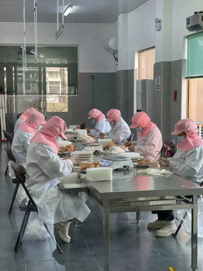 将肉粉比例大大提高,从原先的1:2甚至1:3的比例提升至约2:1。“市面上一斤肉能做5-6斤皮,而我们只能做不到两斤