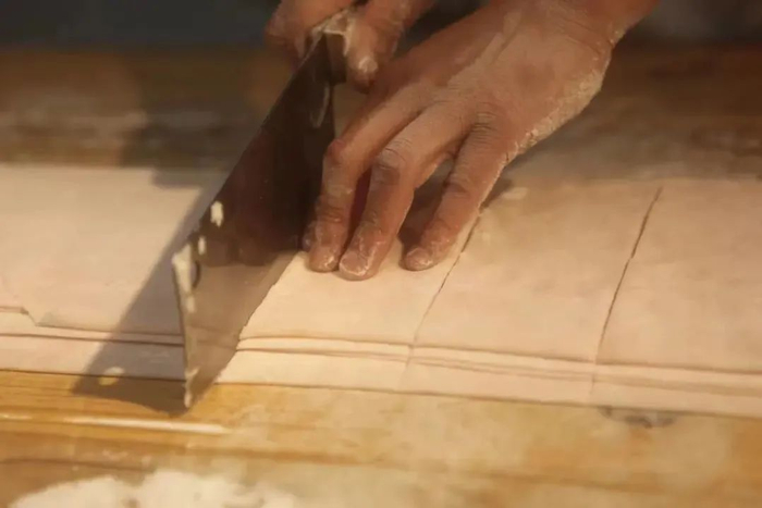 反复敲打,才会更加劲道。它看起来简单,实则包含了大量“火候”。